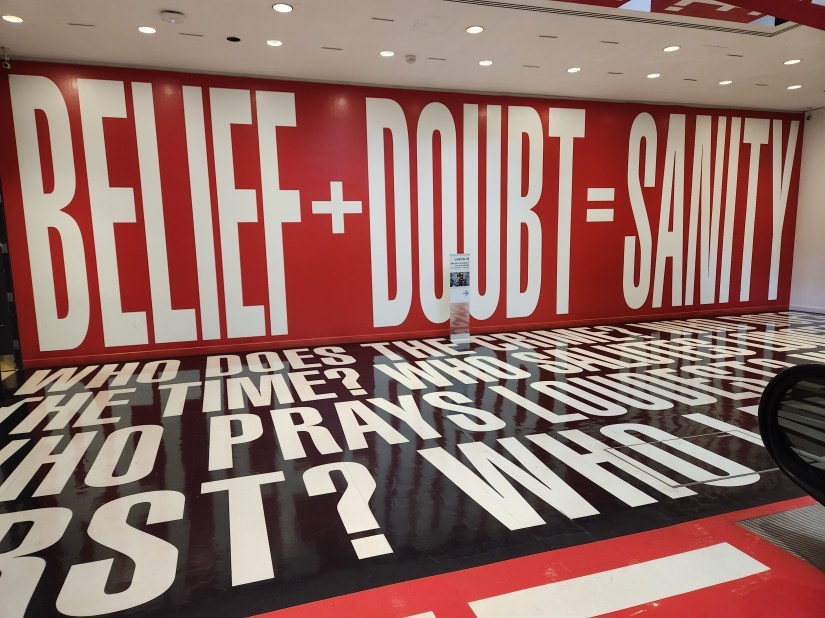 From Barbara Kruger’s Belief+Doubt installation, lower level, Hirshhorn Museum, Washington DC